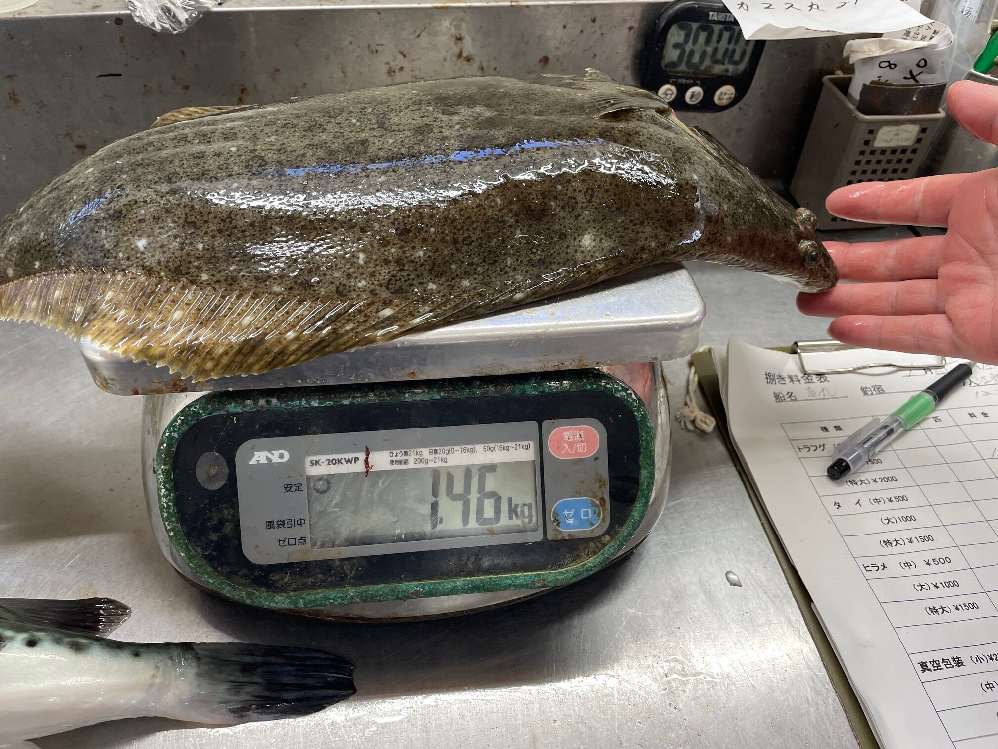 25 1月 by watanabe 飯岡港幸丸でフグ釣り! 1月25日飯岡港幸丸に乗船した東京のEさん、トラフグを始めて釣ったので捌いて欲しいと持参。1,2キロと小さかったが満足ですと持ち帰る。 ヒラメは数匹、最も大きかったのは1,46キロ