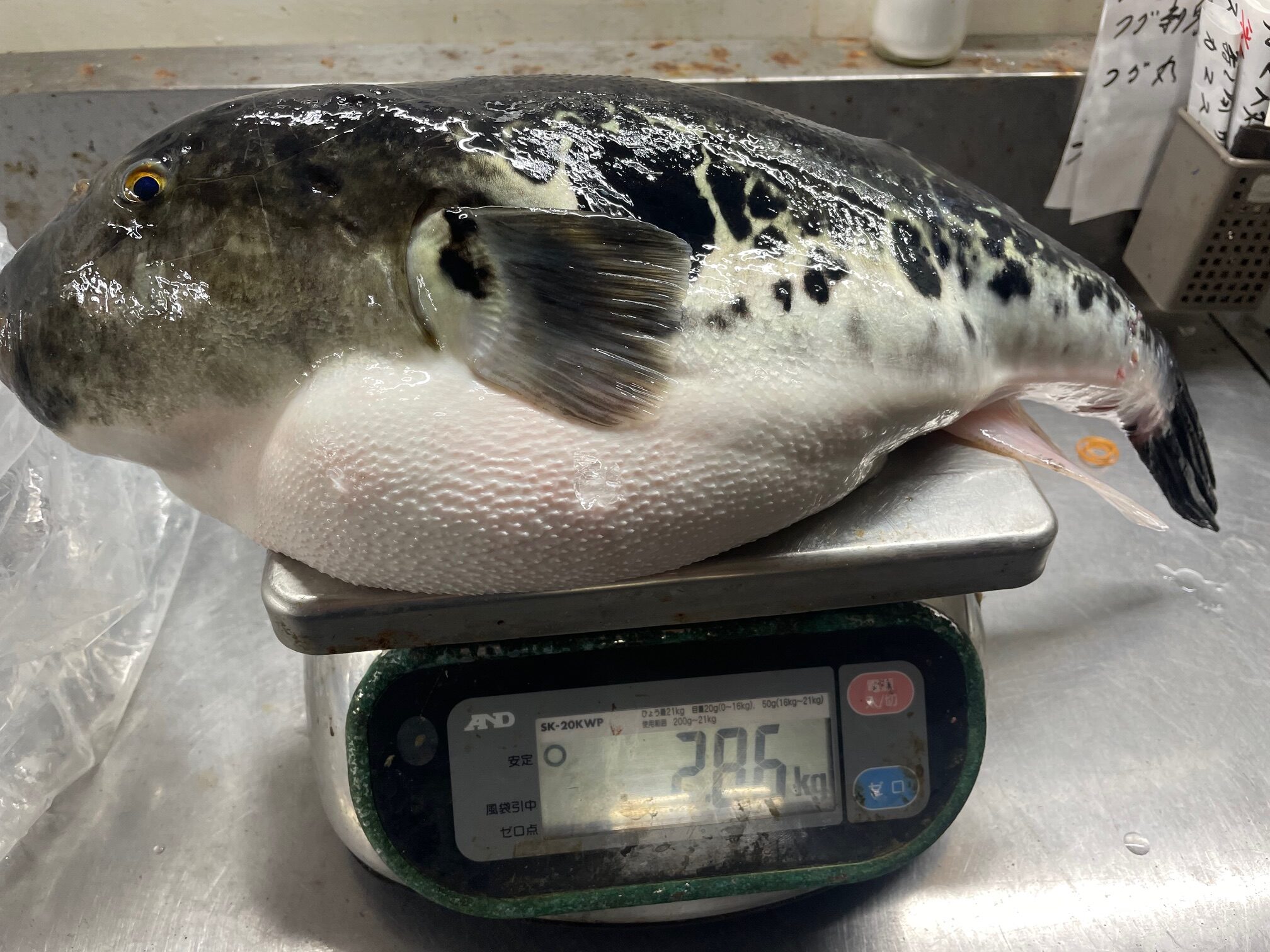 25 2月 by watanabe 2月22日習志野から来た池田さん、2,86キロのトラフグを釣る! 2月22日習志野から来た池田さん、2,86キロのトラフグを釣る!今回の連休中はこのほか5件ほどの捌きの依頼を受けたが業務が多く捌きのみで終わった。