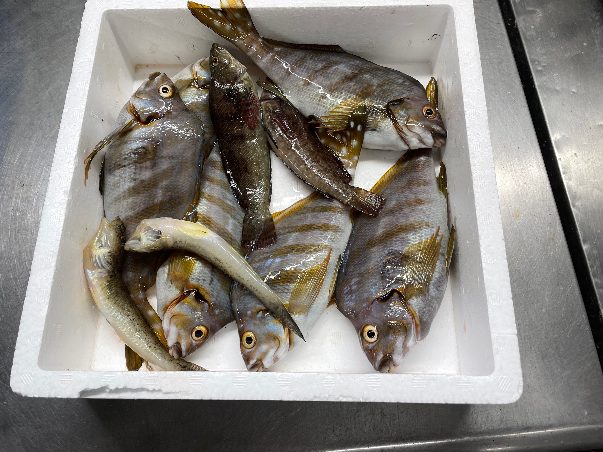 11月15日宿泊、松戸の4名のお客さん。早朝から飯岡港の港内で投げ釣り、小魚十数匹を釣り上げた。刺し身には小さすぎのため唐揚げ、天ぷらに調理しお出しした。夕食にプラスの料理でお腹いっぱいと超満足でした。