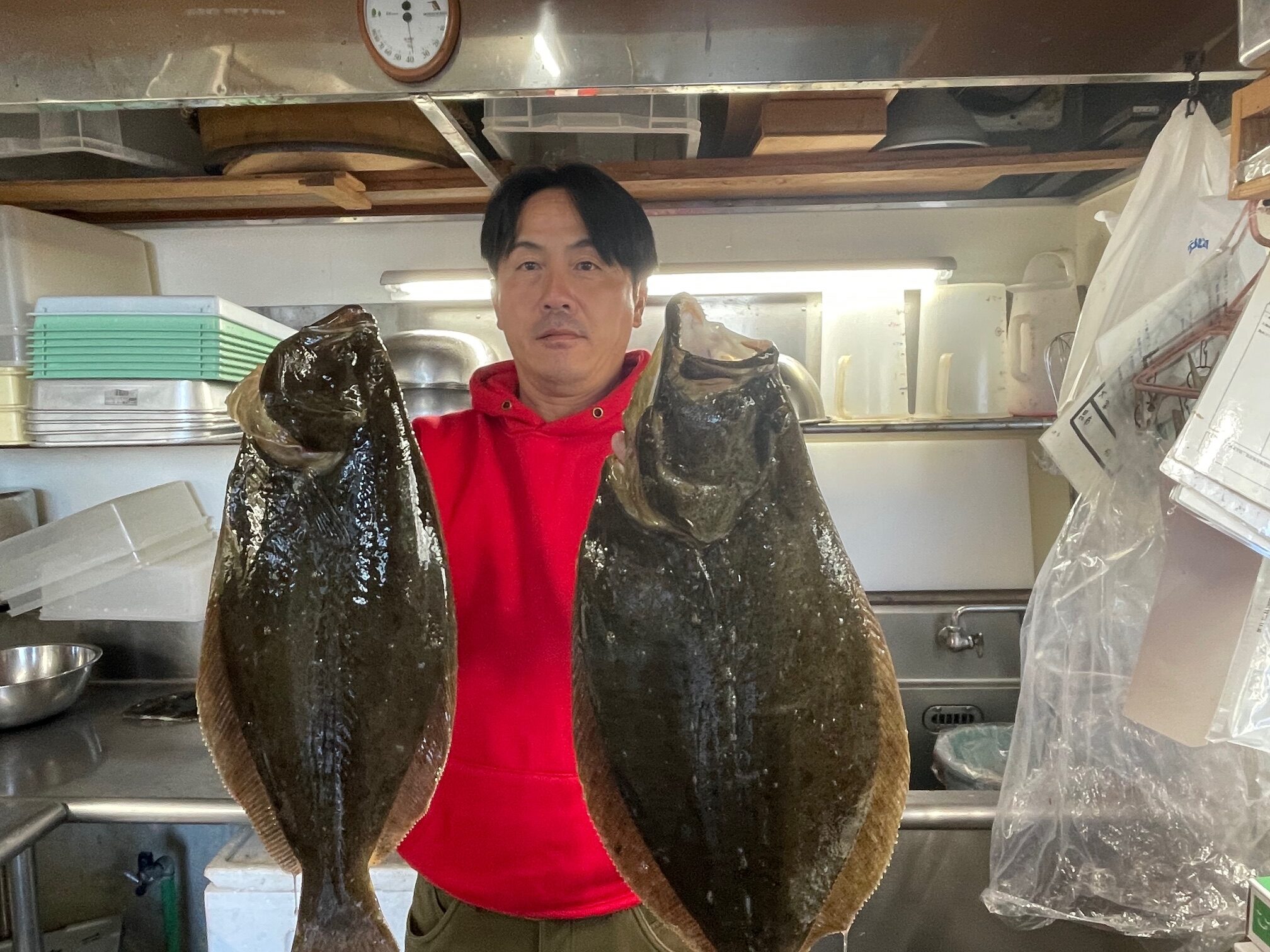 12月30日銚子外川港の大盛丸に乗船した木村さんより捌きの依頼。釣り上げた獲物はヒラメの大、中小合わせて4匹、馴染みの大盛丸には年に4回ほど訪れるという。